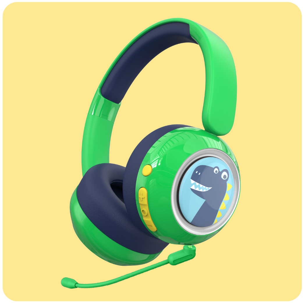 Galaxy Safe Volume Kids and Teens Headphone (Green Dino)