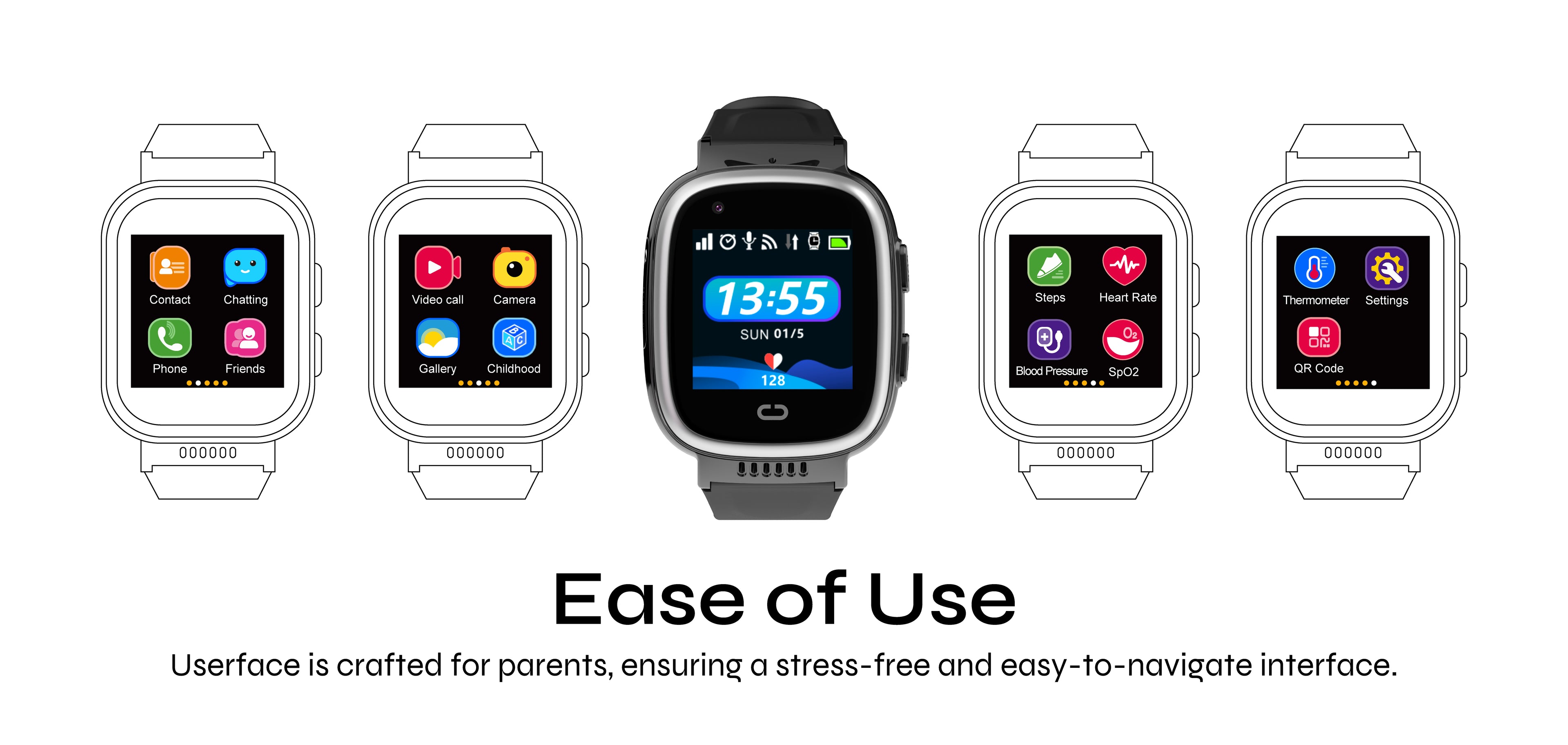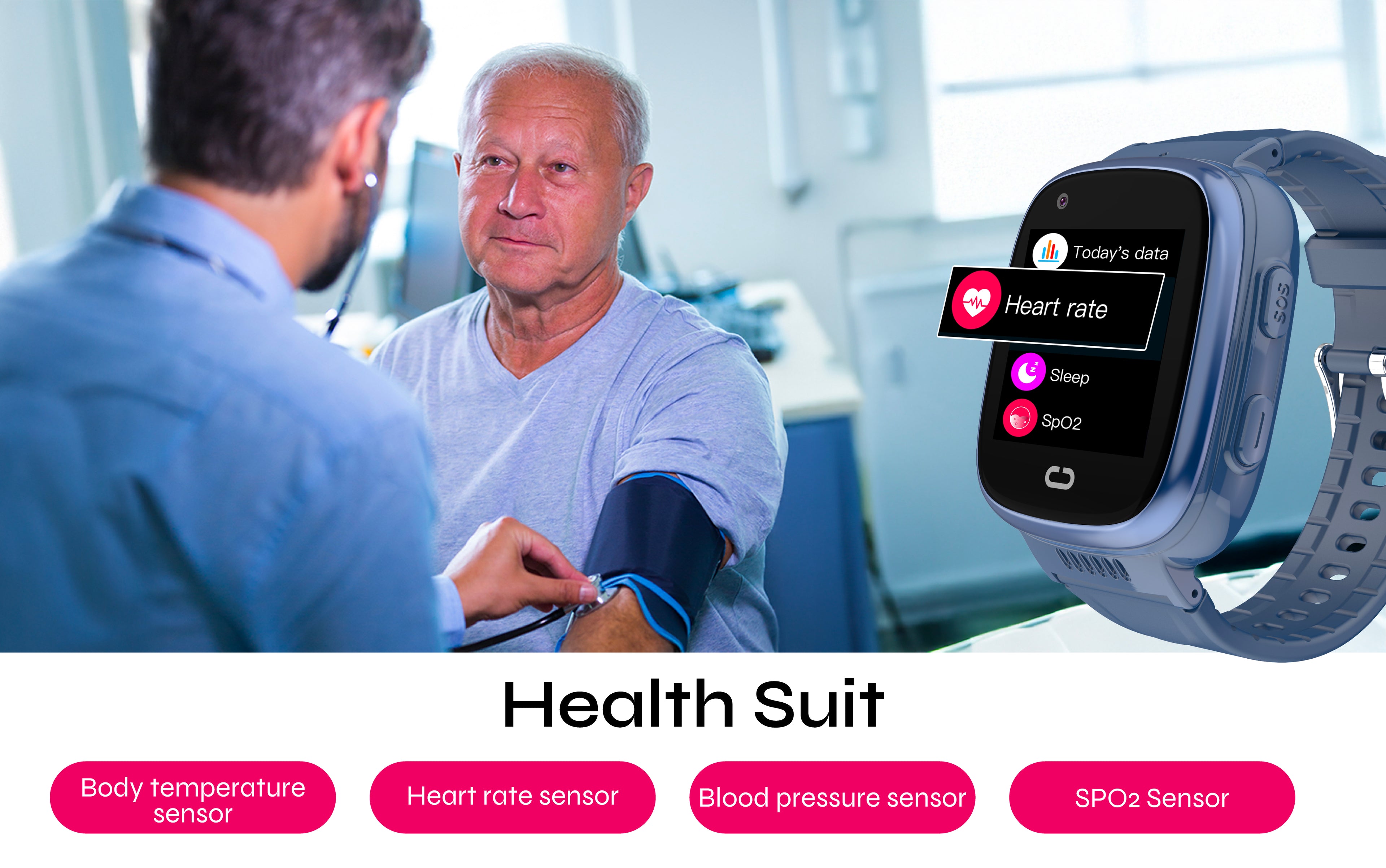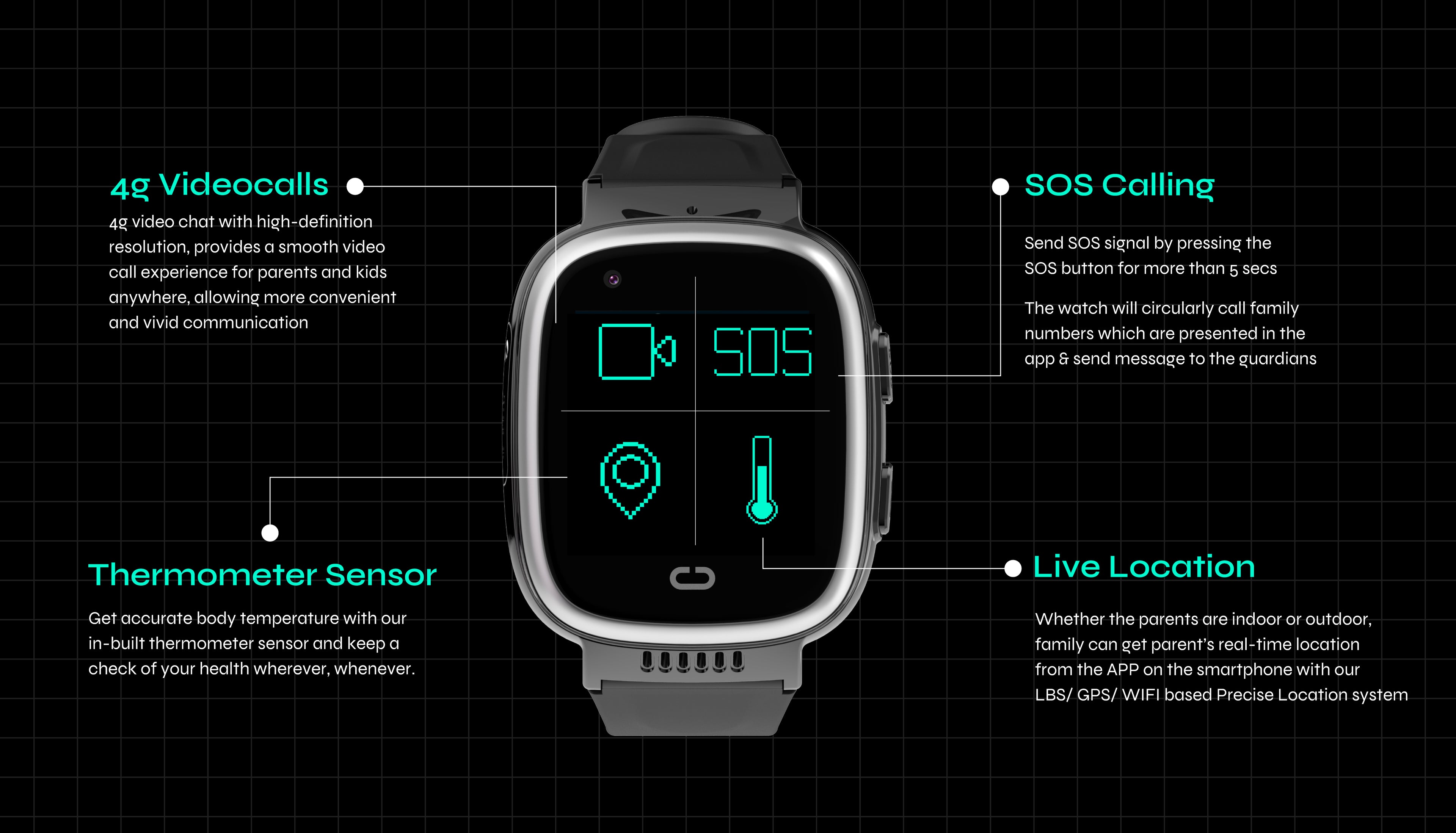 Fall Alert | Calls | GPS | Temperature | Heart Rate | BP | SPO2