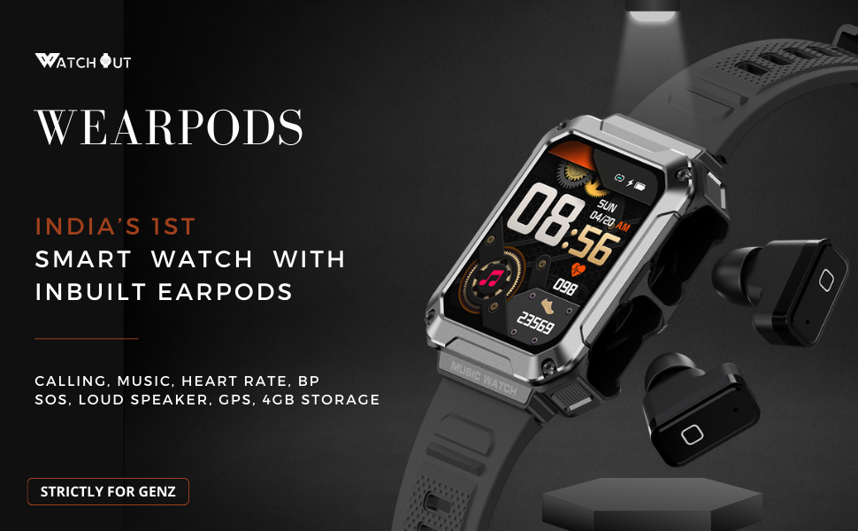 The ultimate solution for GenZ and Youngsters who crave convenience and versatility in their gadgets. With its innovative design, WatchOut WearPods combines the functionality of a smartwatch with the convenience of inbuilt earbuds, giving you the best of both worlds in one sleek device.